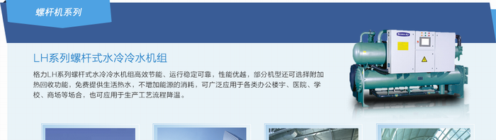 格力水冷螺桿式冷水機組采用最新一代的環保制冷劑R134a,運行穩定可靠,環保節能,在名義工況下的制冷量范圍為:182—1560KW,可廣泛適用于各類辦公樓宇、醫院、學校、商場,也可應用于生產工藝流程的降溫。